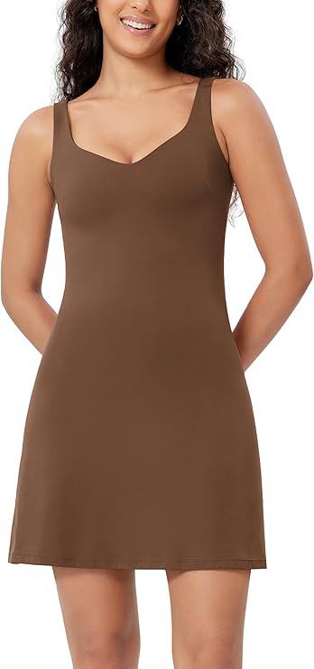 Women's Cloud Feeling Tank Dress with Separate Shorts and Built in Bra U Back Mini Tennis Dress