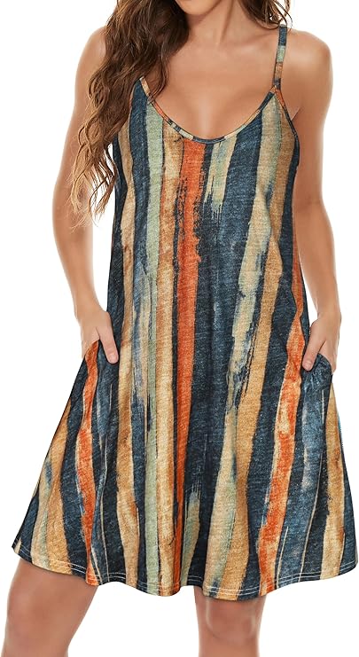 Womens Spaghetti Strap Dress Summer Dresses Beach Cover Ups Casual Sundresses with Pockets