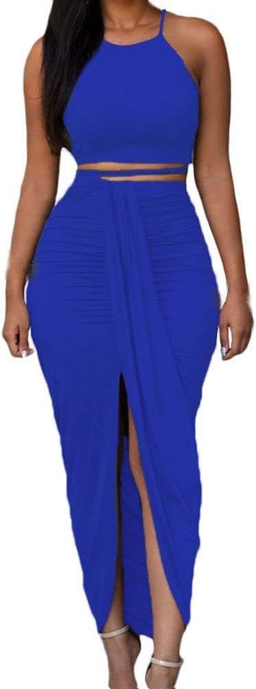Women's Sexy 2 Piece Skirt Sets Elegant Bodycon Maxi Dress Sleeveless Tank Shirt Tops High Waist Ruched Slit Long Dress