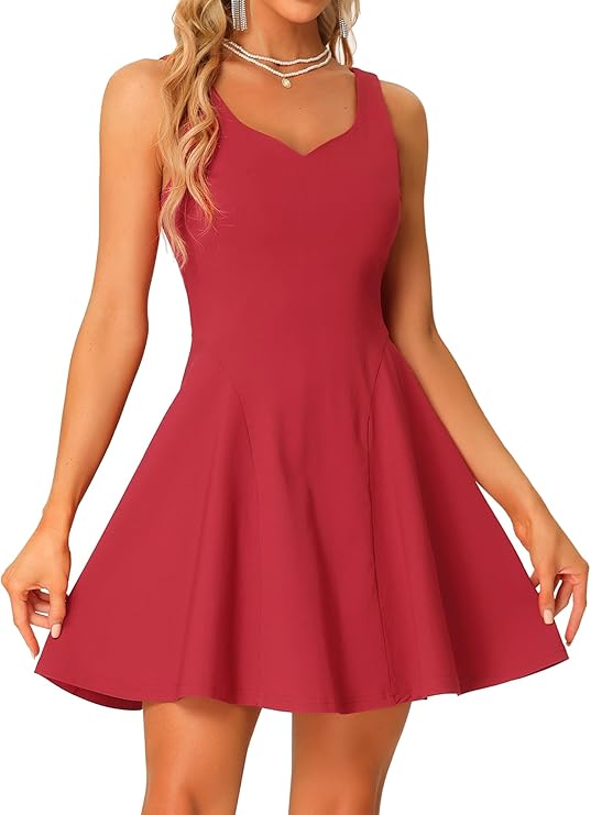 Women's Party Sexy Dress Sleeveless Sweetheart Neck Cocktail Fit and Flare A Line Swing Tank Mini Dresses